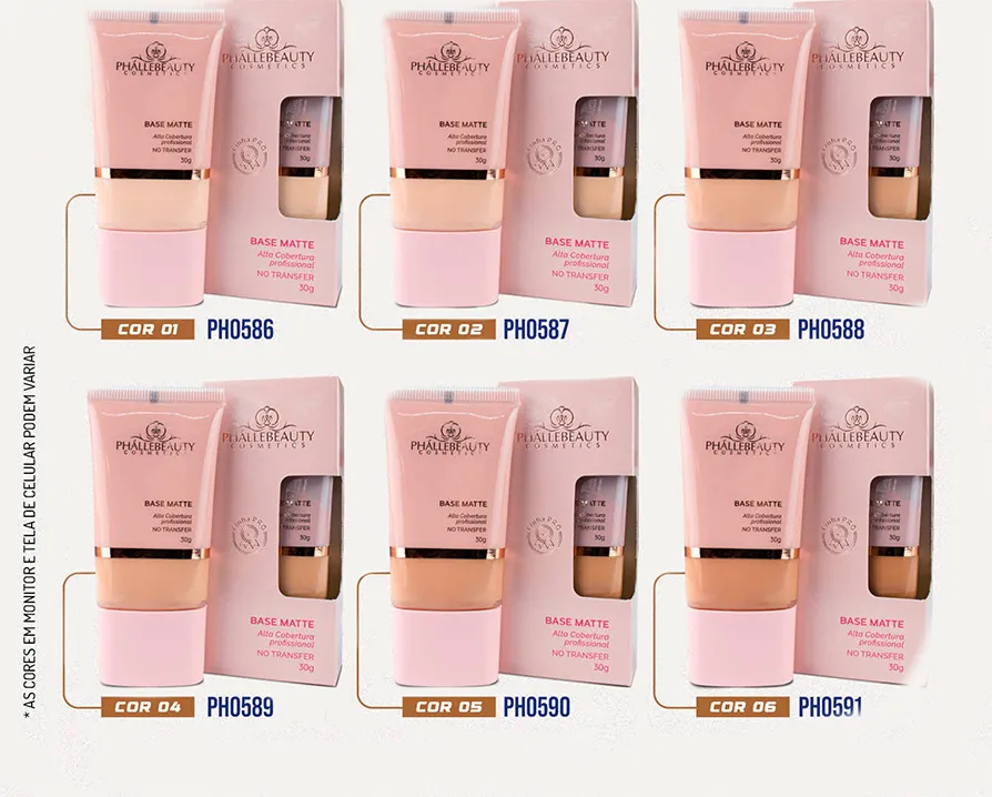 Phállebeauty Linha Pro Efeito Matte possui fórmula oil free, com acabamento sequinho, alta cobertura e fixação.