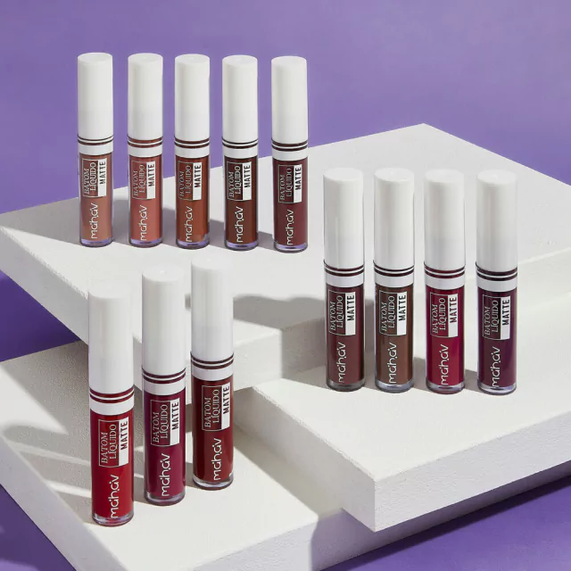 O Batom Líquido Matte Mahav é aquele queridinho que entrega alta pigmentação logo na primeira aplicação. Sua textura cremosa seca rapidamente, deixando um acabamento matte confortável, sem ressecar os lábios. A fórmula foi pensada para oferecer longa duração, fixação impecável e cores modernas que valorizam qualquer maquiagem — desde looks do dia a dia até produções mais marcantes.