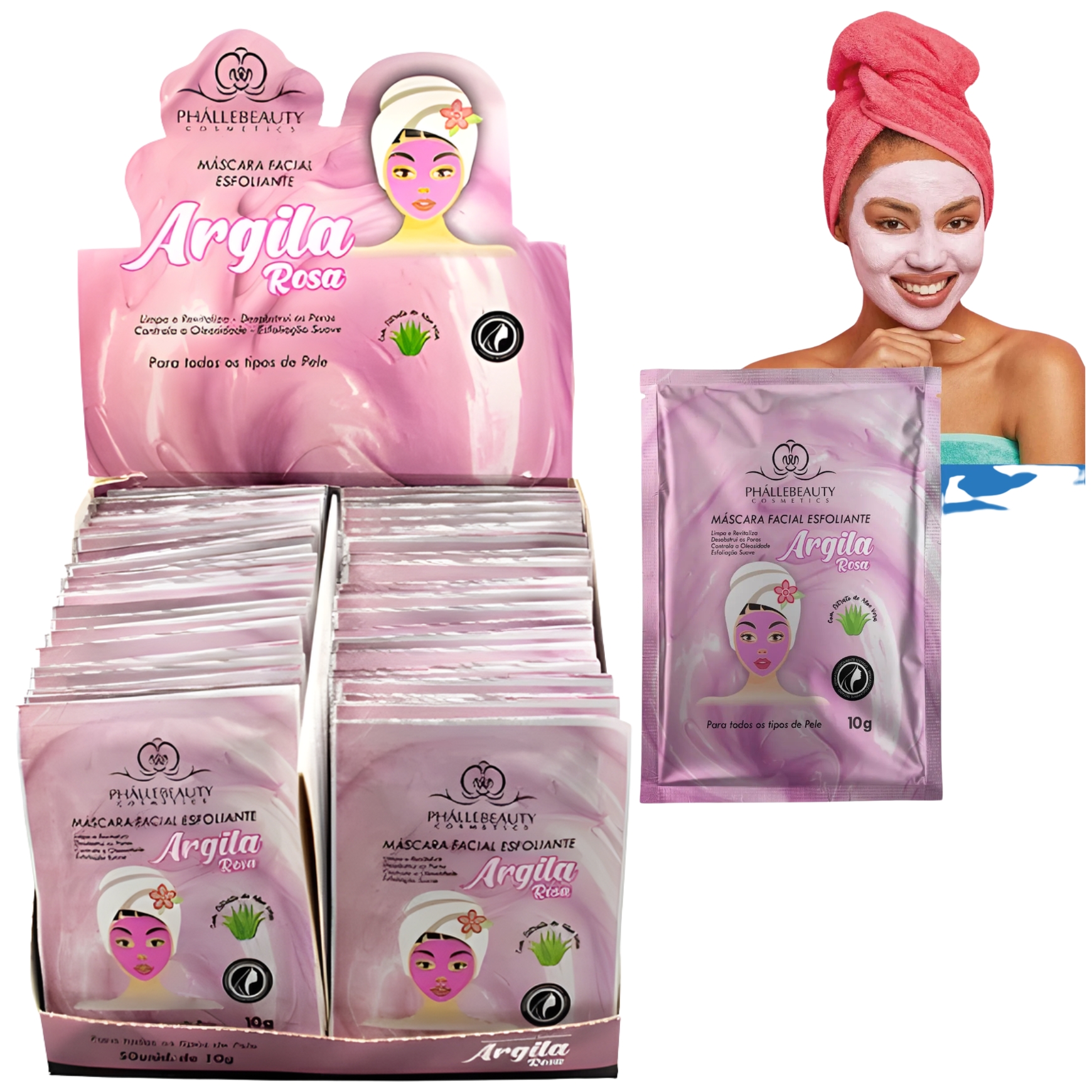 BOX SACHÊ ARGILA ROSA MÁSCARA FACIAL PEEL OFF PHALLEBEAUTY - 50 UNID.