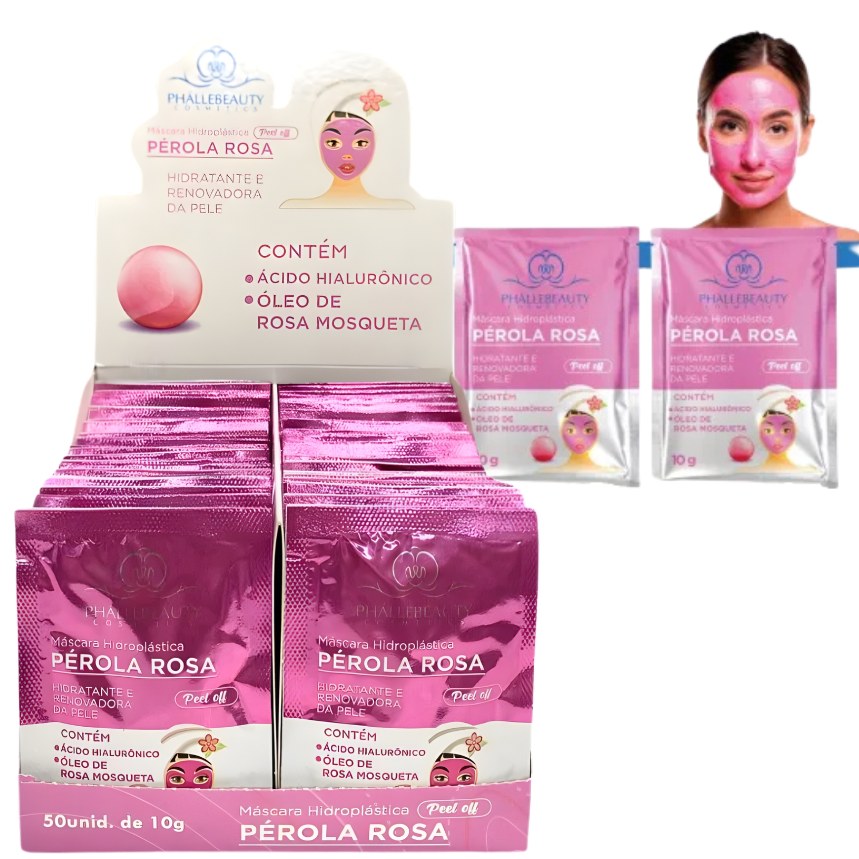 BOX SACHÊ PÉROLA ROSA MÁSCARA FACIAL PEEL OFF PHALLEBEAUTY - 50 UNID.