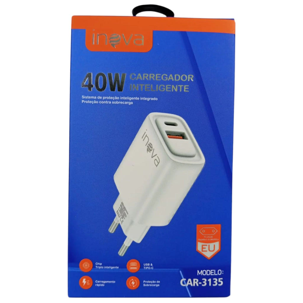 ⚡ FONTE DE CARREGADOR 40W INOVA CAR-3135 – POTÊNCIA, VELOCIDADE E PRATICIDADE ⚡