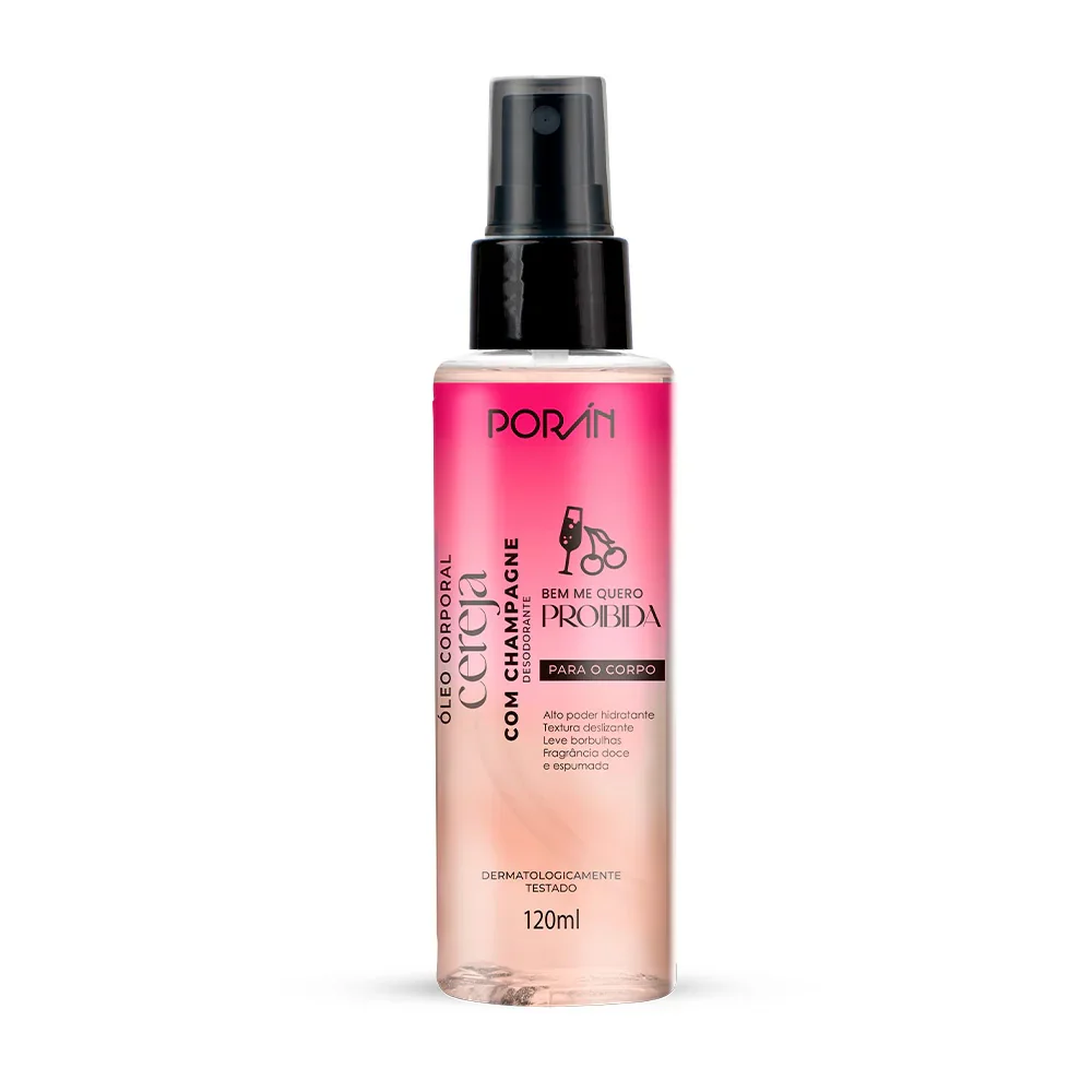 Conheça o Óleo Corporal Cereja Com Champagne 120ml da Porán, uma combinação luxuosa que transforma seu cuidado diário em uma experiência sensorial única. Este óleo corporal é perfeito para quem busca hidratação profunda e um toque de suavidade na pele, sem deixar resíduos oleosos. Com uma fragrância envolvente de cereja com champagne, ele proporciona uma sensação de frescor e revitalização, ideal para todos os momentos. Além disso, sua fórmula é cuidadosamente desenvolvida para nutrir a pele, deixando-a macia e radiante ao longo do dia. Experimente o charme e o requinte que só o Óleo Corporal Porán pode oferecer, e sinta-se revitalizado desde a primeira aplicação.