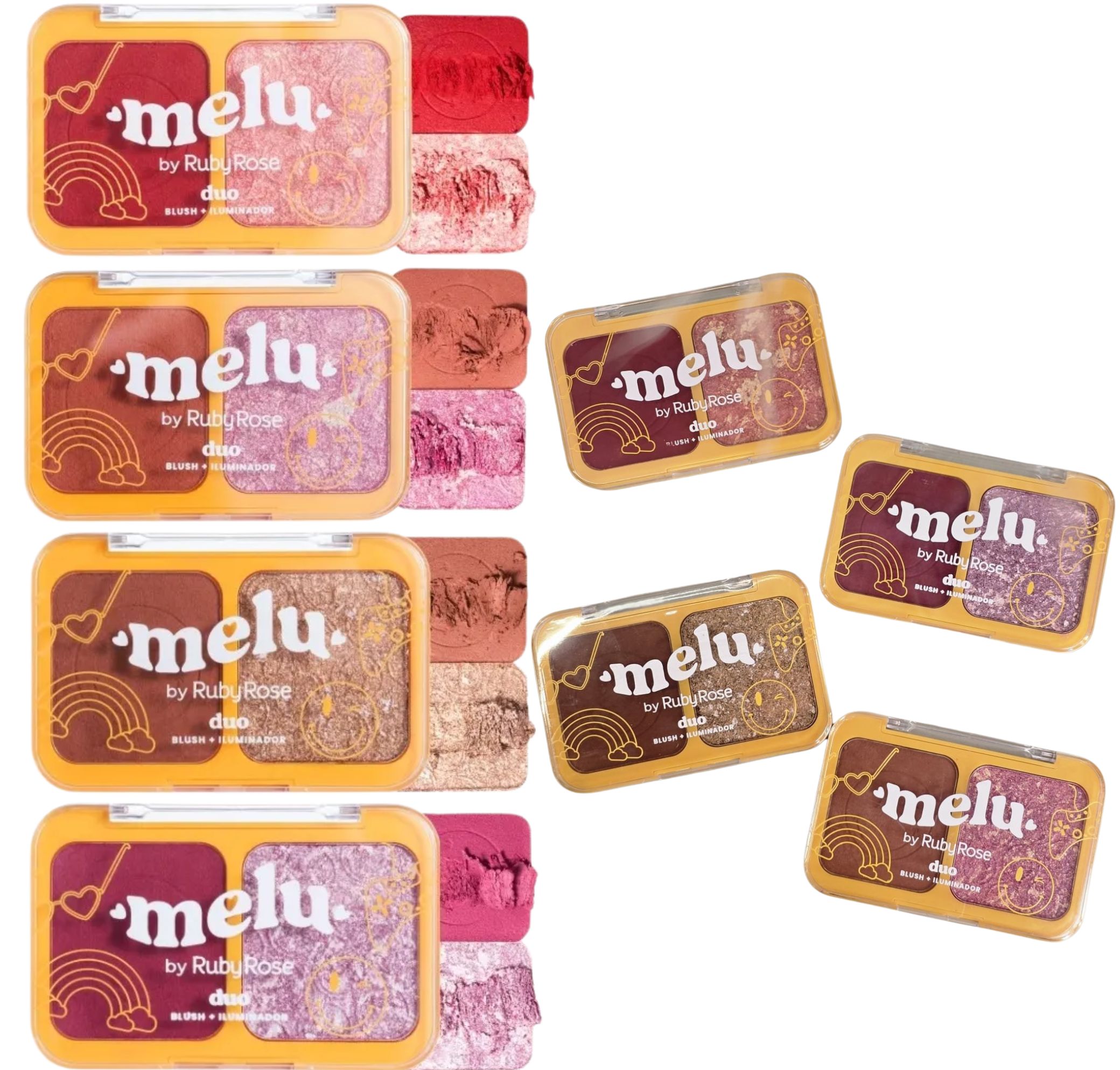 A Paleta Duo de Blush e Iluminador Marmorizado Melu Ruby Rose (também conhecida como Duo Blush + Iluminador Melu by Ruby Rose) é uma paleta versátil que combina um blush altamente pigmentado e um iluminador marmorizado para um acabamento luminoso e natural. Está disponível em várias combinações de cores para se adequar a diferentes tons de pele e preferências.