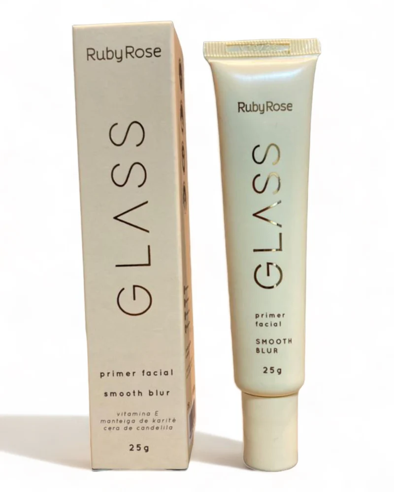 O Primer Facial Smooth Blur Glass da Ruby Rose (HB352) é um pré-maquiagem focado em minimizar poros e linhas finas, proporcionando um efeito "blur" (desfoque) e toque aveludado. Vegano e com fórmula leve, suaviza imperfeições, uniformiza a pele e aumenta a duração da make. Enriquecido com Vitamina E e manteiga de Karité, oferece hidratação e um acabamento sequinho, sem brilho.